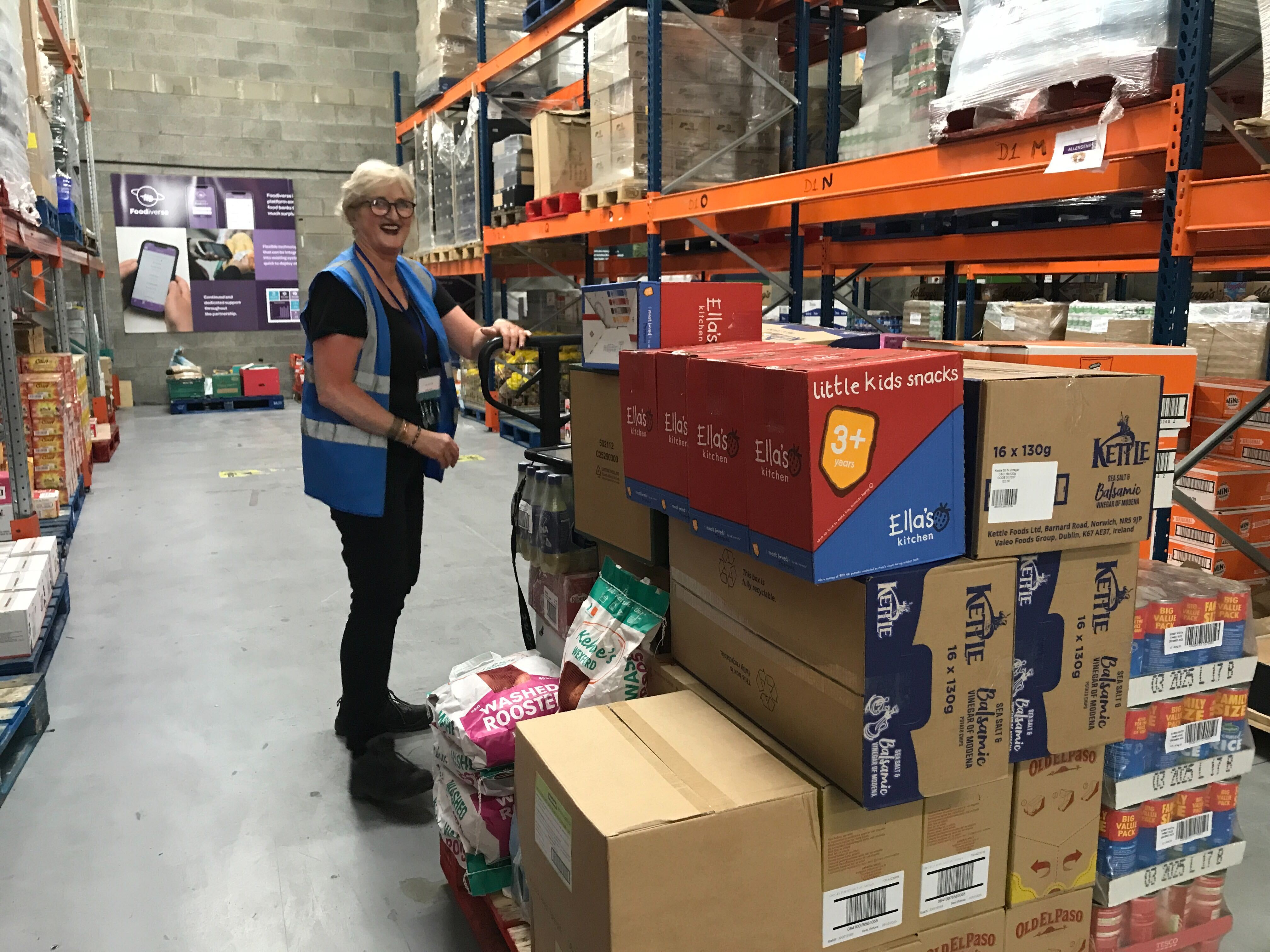 Every day is different, and it could be picking, sorting a pallet, labelling a product, putting items on the system, or even being allowed to use Gavin’s prized floor washing machine. While the warehouse is my main spot, I have had the opportunity to volunteer with the FoodCloud Kitchen in the café in Richmond Barracks and at the Christmas dinner for senior citizens, which FoodCloud catered in December 2024.